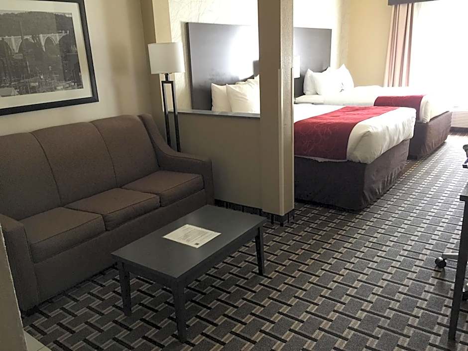 This suite features a microwave, refrigerator, and a seating area with a sofa bed.