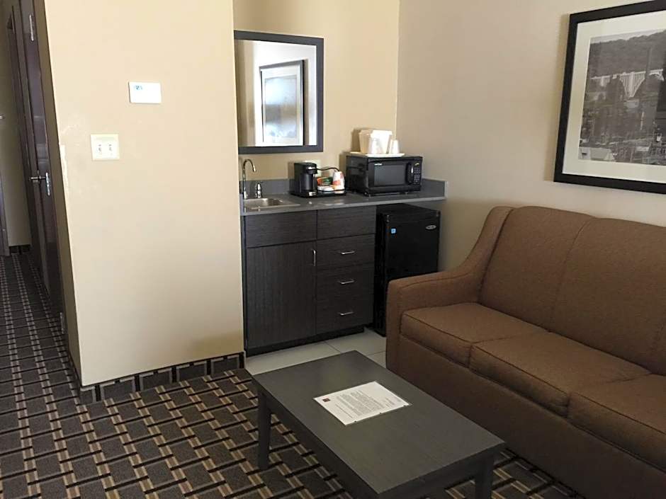 This suite features a microwave, refrigerator, and a seating area with a sofa bed.